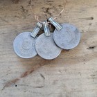 Set of vintage, medium, Kuchi tribal coins coins with loops/bails that are in their original condition, i.e., neither cleaned nor polished. There are a variety of currencies. The coins are .88" wide but the length will vary due to the stylistic differences in bails. These are called "tribal" coins because they are used by the different nomadic (Kuchi) tribes of Pakistan and Afghanistan as adornment. They can no longer be used as currency - all of them have a loop/bail. Overall these are a silver-tone. There is surface wear, patina, dusty crevices, and an aged, used appearance. Different monitors and phone apps show colors differently. I do my best to accurately document color using both photos and written descriptions. If you have any questions, please send me a message.