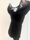 Eleve Charlotte Black Flocked Dot size Large. Excellent condition, super pretty sleeves and front and back rouching. Velvet base.