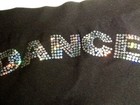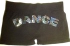 EMBELLISHED DANCE SHORTS. "DANCE" in prismatic-silver sequins. Excellent, like-new condition. Super-stretchy black shorts are embellished in back with. The lucky winner of this item should make. JUNIOR/ADULT ONE SIZE FITS MOST.