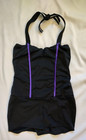 Vintage Kelle Bodysuit Romper Dance Halter Tie Top Black & Purple K3T2 Adult M