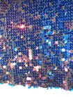 Colors Are Blue, Pinkish Orange, and Green Sequins. Ultra Sparkle Dress Over Built In Biketard. Snap Closure At Large Keyhole Back.
