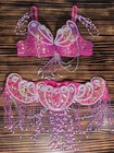 Sequins Beaded Embellished Pink Bra/Belt Sz 36 2pc Set Belly Dancing Mardi Gras