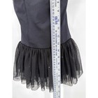 Capezio black ballet leotard dress features a tutu skirt with sequin accents and delicate floral appliqués at the neckline. Designed with sheer mesh cap sleeves, this one-piece dance outfit offers a classic scoop neck and a comfortable stretch fit perfect for practice or performance. The layered tulle skirt adds volume and sparkle, making it a charming choice for any young dancer. Measurements: • Pit to pit: 10.5" (21" doubled) • Length: 19" • Waist: 9.5" (19" doubled)