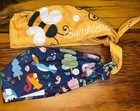 Excellent preowned condition. Clean. Very cute animal themed. Tie back scrub hats lot of 2 caps. Free Shipping. Check out my other items. (7)