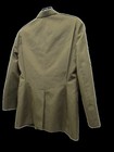 Label: COAT, MAN'S WOOL SERGE | ARMY GREEN, SHADE 44. Material: 100% Wool (wool serge). Color: Army Green (Shade 44). Features: Sergeant rank chevrons on both sleeves. Features: Four front pockets with flap and button closures; notch lapel.