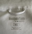 Feature to front pockets in a box and snap buttons. It’s size medium, but it looks like it might fit size large.