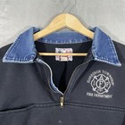 Vtg Game Workwear Fire Dept Job Shirt 1/4 Zip Denim Collar Elbow Patch Navy 2XL