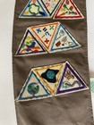 The product is a vintage Girl Scouts of America official brown sash with patches for the Mid Continent region. This sash is a symbol of belonging and commitment to the Girl Scout organization, featuring the official brown color and patches representing various achievements and activities within the scouting community. Ideal for collectors or those looking to revive their Girl Scout memories, this item holds sentimental value and represents the shared spirit of the Girl Scout movement. #1195