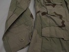 Model: Desert Combat Uniform. Color: 3 Color Desert Camo. These are used with normal wear in good condition. As military gear ages and sees more use, it might fall into the Grade B category. MFG: Military Contractor.