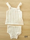Vintage Homemade Baby Girl Cream and Pink Ribbon Knit Top and Bloomers Set