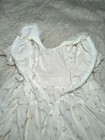 Gorgeous lace trim fluffy dress. Feminine and super cute. No size so please check measurements provided. No flaws. This beautiful homemade dress is perfect for any little girl's party. The dress features a stunning floral design with pink, white, purple, blue, and yellow lace trim. The short sleeves and ruffle details add a touch of Victorian charm to the dress, making it a perfect addition to any vintage-loving parent's wardrobe. The dress is made from a comfortable cotton blend material and is sized for girls aged 12-18 months with a waist size of 20". The shoulder to hem length is also 20", making it a perfect fit for the occasion.