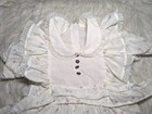 This is a cleans classic smocked dress/shirt?. Beautiful embroidered work. Button closure in back. Peter Pan collar. Does have a small call out on the collar as shown in pics. An adorable vtg piece.