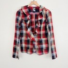 Free People FP Mart Ruffle Plaid Shirt Jacket Size 6 Red Y2K Vintage Originals