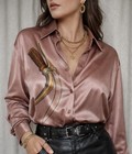 Rare, collectible Nik Nik shirt. Stunning mauve color with handlebar print. Made in Italy. Great condition except for one tiny hole on the lower back. It is located approximately 4 inches from the bottom, so it will be hidden if you’re planning to tuck it in. Please see photos. Size: L Vintage sizing may differ from modern sizing, please see photo measurements for best fit. Material: Nylon. Color: Mauve/pink tone. Coat and necklace are available, but sold separately. Color may vary slightly due to lighting and screen settings. Cg-1