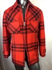 Vintage 70’s Brent Plaid Wool Red Black Full Zip Lined Barn Jacket Coat Sz 40