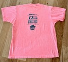 It's a bright pinkish orange shirt by Fruit of the Loom, made from 100% cotton in size extra-large. It has a race design on the front and sponsors on the back. It's in great condition, clean & odor free.