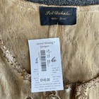 Large, fold down collar, slit pockets and a loose silhouette complete the look. Fully lined interior plus a trim of black leather along the front opening section which stays closed with hidden buttons.