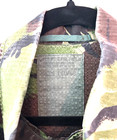 The product is an evening wrap designed by BILL BLASS, featuring a short sleeve and iridescent green color. Made from polyester material, this size 16 wrap is a stylish and luxurious addition to any vintage clothing collection. Perfect for a special occasion or adding a touch of sophistication to any outfit, this BILL BLASS wrap exudes elegance and class. Measures about 44 inches across the chest and from shoulder to hem about 41 inches The waist measures about 18 inches across the front