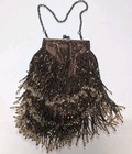 Brown Vintage Beaded Purse, With Clasp, Chain, 6x4. Needs Tlc