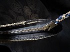 Tip to tip 35", first hole (tightest fit) 28.5", last hole (loosest fit) 31.5, width of leather 1.75". Provenance: Acquired in Nebraska.