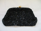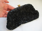 Sparkly Rhinestones inset in the clasp add just the right touch of glam. sparkly, no missing or loose beads or sequins. Lined in black satin. little slip pocket in there. Color:Black; goldtone hardware.