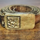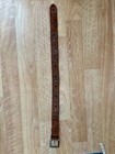 Belt Buckle: 2" x 7/8". Leather Belt" 37". Presents with age-appropriate wear consistent with age/use.