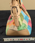 The bag features a multi-color patchwork exterior w/ Fossil monogram texture, genuine leather trim, Fossil Key, and signature interior leather patch. - 1990s- 2000s Y2K era. This is a rare Fossil archive/sample pieces - ideal for collectors, Y2K fashion enthusiasts, or anyone seeking a unique, unrelated design.