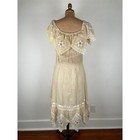 This bohemian style dress features a strapless design, prairie look, and is made of lace material. Perfect for a special occasion like a wedding, this dress exudes a romantic and elegant vibe. Condition- given an oxi bath due to age and dried in sun and fresh air.