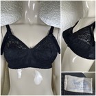 Vintage 1950s Jantzen Black Floral Lace Bullet Bra 36B Balconette Underwire 934