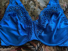 Bra Style # 33511 ~ Color: Royal Blue. LACE EDGINGS SATIN EMBROIDERED UNDERWIRE BRA. Size: 38DD. Tonal satin stretch wings. Nylon, Spandex. Beautiful bright color blue.