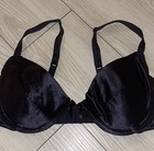 Women’s Vintage Victoria’s Secret Gold Label Second Skin Satin Plunge Push Up Bra, black, padded, underwire, back close Style: 1277 Size: 36B