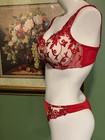 VINTAGE SOMA ~ RUBY RED SENSUOUS LACE SHEER UW BRA SET ~ SIZE 36C / Medium