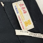 Made in the USA from fluid 100% polyester with rich jewel tones of navy, black, gold, and red. Features a contrasting red sash and piping, long flowing silhouette, and classic disco-era glamour. Refer to photos for further information.