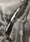 Vintage Longevity Black Rayon Floral Pagoda Embroidered Kimono Sleeve Robe