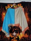 Condition: a few small holes that are not very noticeable. Missing a Rhinestone on the broach of the cape. Rhinestoned out blue silk velvet set!