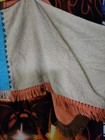 Clean and without odors and tears. Included are One features dark maroon border with brown, green and tan colors within the print. The other scarf features black border with brown and gray within the print.