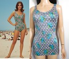 Vintage Gabar 1950s Floral Skirted One-Piece Swimsuit Pleated Swim Dress