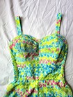 Vintage 1950s swimsuit, one-piece pin up dress green blue yellow L