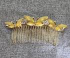 Elegant gold tone butterfly hair comb with opal-effect stones and sparkling rhinestones. Beautiful statement piece for bridal, wedding, or evening hairstyles. Lightweight and comfortable, holds hair securely. Please see photos for details and condition.
