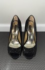 Up for sale is a stunning pair of Stuart Weitzman women's shoes in a beautiful black sequined design. These shoes are perfect for any formal occasion and are sure to turn heads. With a size of 9 in US women's shoe sizing, they are a comfortable fit for any wearer. The shoes are perfect for a wedding or any other formal event. The sequined design adds a touch of elegance that is sure to make these shoes stand out. Whether you're looking for a comfortable and stylish pair of shoes or just want to make a fashion statement, these Stuart Weitzman shoes are the perfect choice.