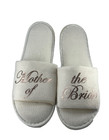 The product is a pair of Mother of the bride slippers in size Large. These slippers are specifically designed for the mother of the bride to wear during the wedding or formal occasion.