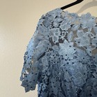 Long Cap Sleeve Embroidered Fit and Flare Dress With Godet Detail Skirt, Illusion V-Neckline and Shawl. Light Blue Color. The pink dress shown is stock photo only to give a better idea of it on a person. One small hole in the shawl.
