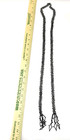The Beaded Sash is a 53" long accessory designed for formal occasions like weddings. Handmade with black beads, this unique sash adds a touch of elegance to any outfit.