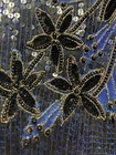 Albert Paul blue and black sequins and beads covering a 100% silk material and rayon lining. Worn once to a New Year’s party.