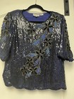 Albert Paul Top Size L Midnight Blue Sequin Beads Silk Scallop Edges Exc Cond