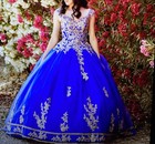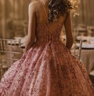 Rose Embellished Ball Gown with Corset Back, Beaded Lace, Quinceañera dress, glitter dress, Worn once, Size 0
