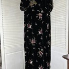 Velvet black long maxi dress. The design is like an elegant appliqué. All of that appliqué appears in good condition. I see no peeling or raised areas. Size my guess is maybe 10, 12 or 14?. The label is in another language and the phone number is an overseas number.