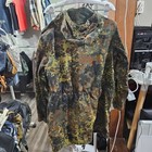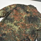 Authentic German military camouflage field jacket featuring classic Flecktarn camo pattern. Button-front closure with multiple utility pockets, reinforced construction, and durable woven fabric designed for field use.