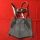 Lederhosen Child’s German Oktoberfest Leather Shorts Gray Vintage Size 19” X 11” Purchased from large Military Estate Collection These are complete and in nice shape for their age