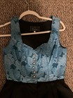 Scarlet Darkness Floral Dirndl Set Blue Pink Rose Oktoberfest Dress Blouse Large
